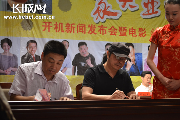 新闻发布会上,导演章家瑞与小说《麦河》的作者关仁山签定了根据同名小说改编成电影《麦河》的意向协议。